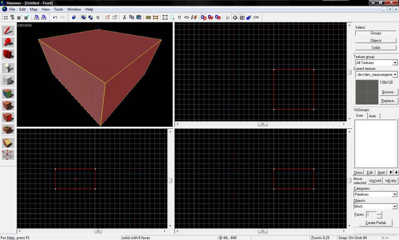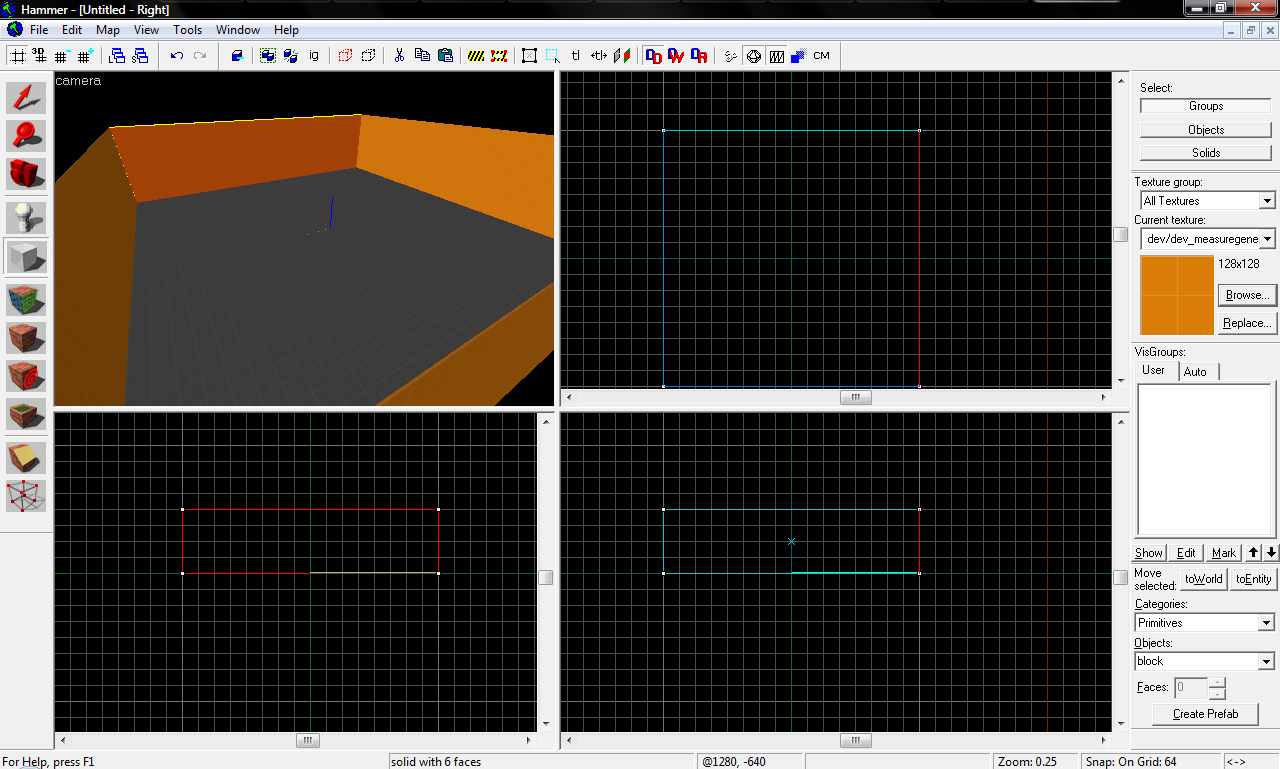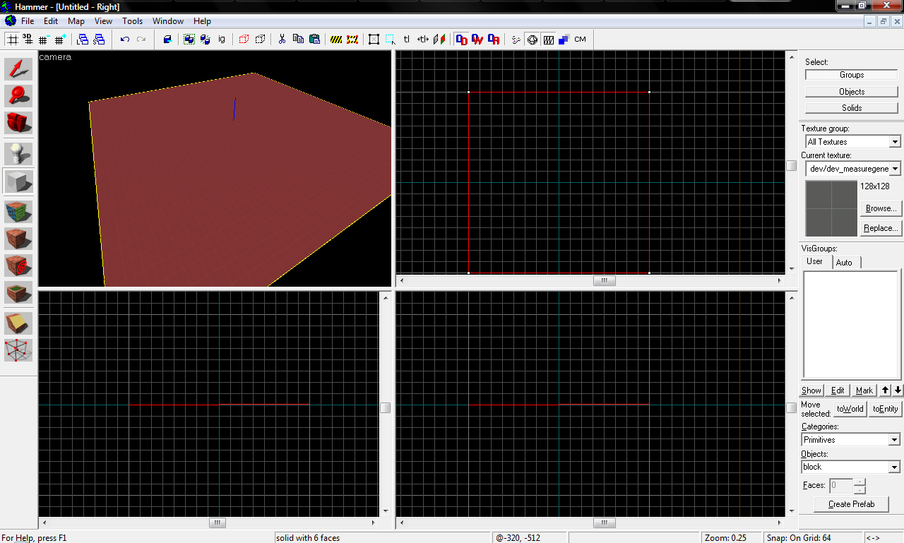Z nabídky toolů si vybereme "Block Tool" zkratka shift+B a vytvoříme krychli nebo kvádr, dle libosti.